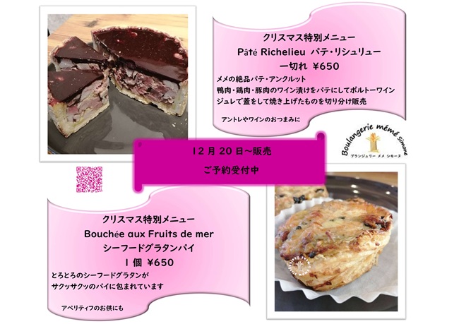 クリスマス特別メニュー予約フォームPâté Richelieu パテ・リシュリュー