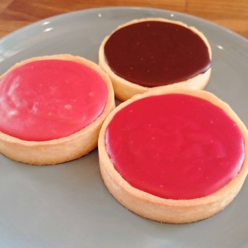 今年もルビー色の甘酸っぱいフランボワーズチョコレートのタルト、イチゴの香りのするイチゴチョコレートのタルトの2種類が期間限定で販売します。