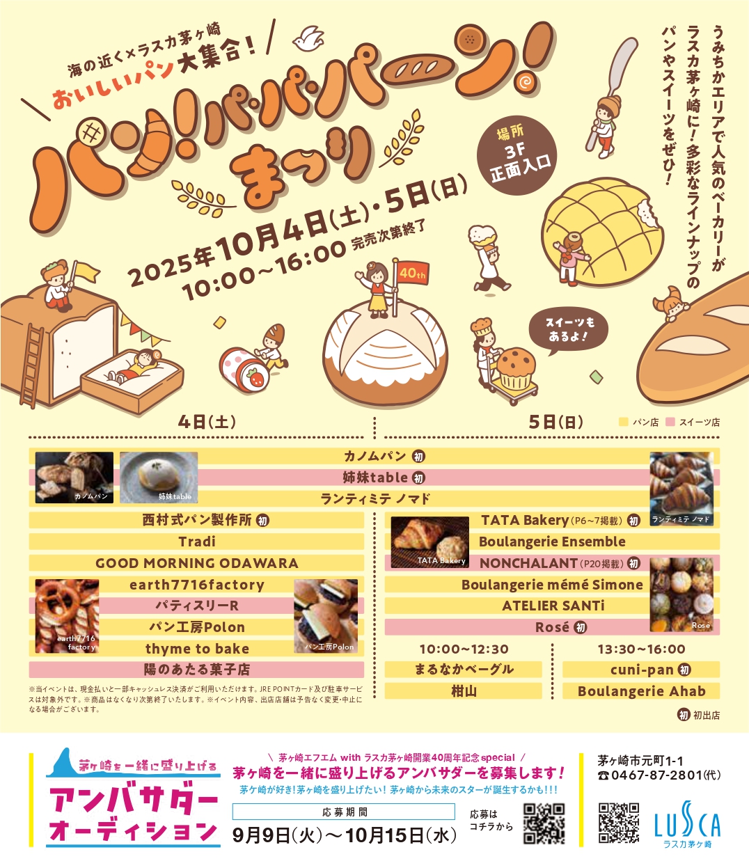 10月4日と5日ラスカ茅ヶ崎店で行われる恒例のパン祭りに5日(日)のみ今回もメメシモーヌが出店します。