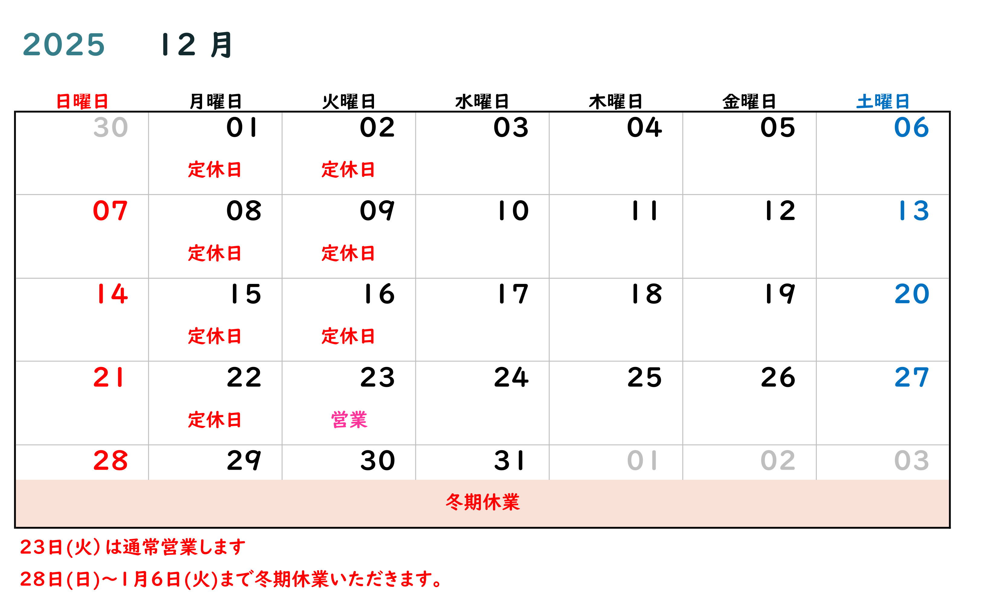 ご予約受付・・・12月14日(日)までの受付→12月20日以降のお渡し